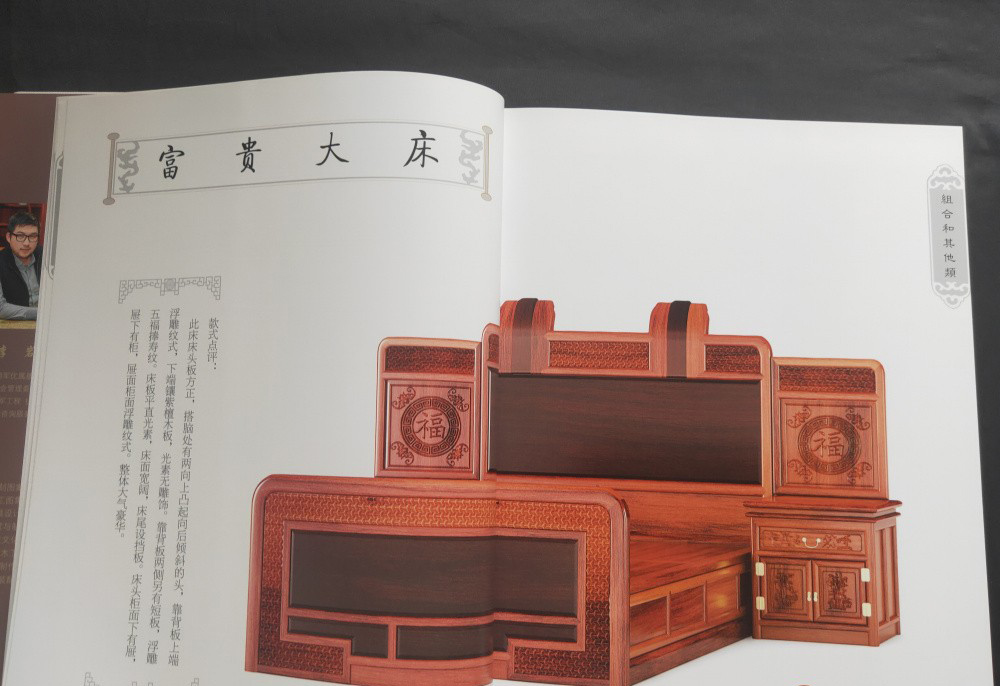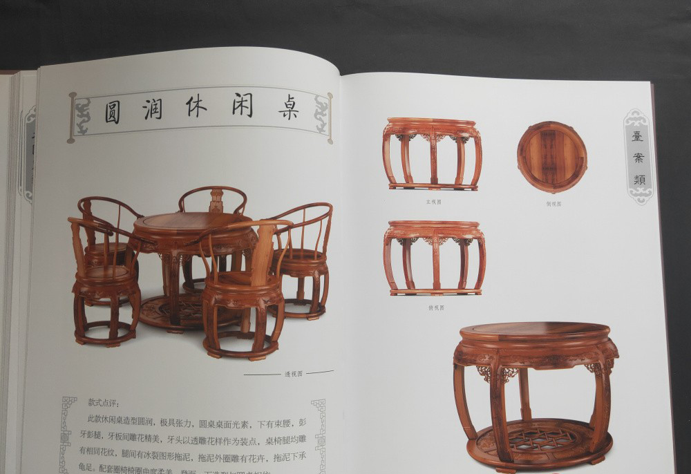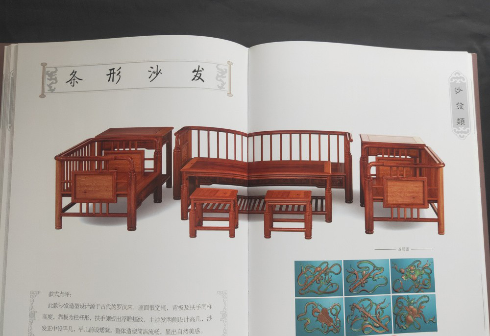 本套圖書共分為6冊,分別為椅幾類、櫃格類、台案類、沙發類、床榻類、組合和其他類,收錄了明清在譜家具和新中式家具共計6000餘款。本套圖書收錄的家具經過編者的細心挑選,在譜的一比一還原複製,新中式比例