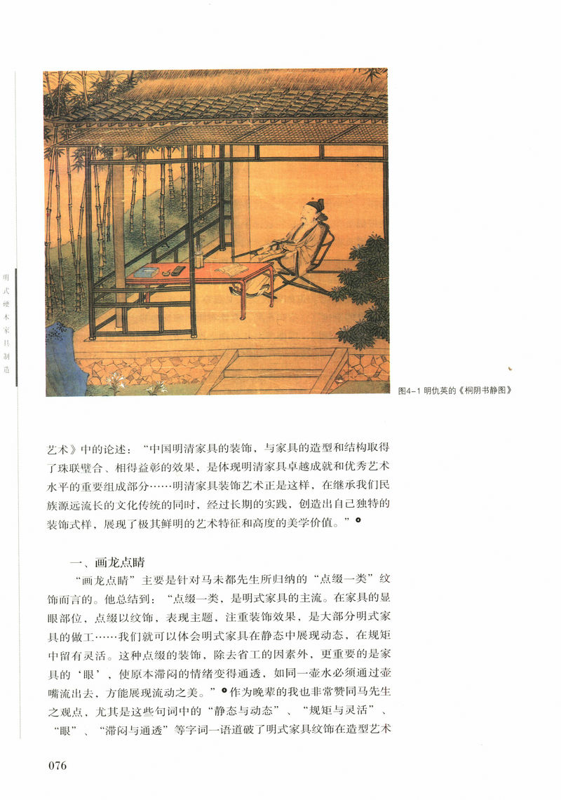 《明式家具圖案研究》的內容原本是《變化中的明式家具》中的一部分,不想其內容的飽和度和課題的獨立性使其獨立成書,而且還早於《變化中的明式家具》出版。可見明式家具學科的高山大嶺裡還有多少可待開發的迷人景緻。筆者嗜愛明清家具久矣,但以明式家具開題作文卻集中在近幾年。吾夙興夜寐而為之,並奮發礪志,以對明式家具的學術史有所貢獻為目標。