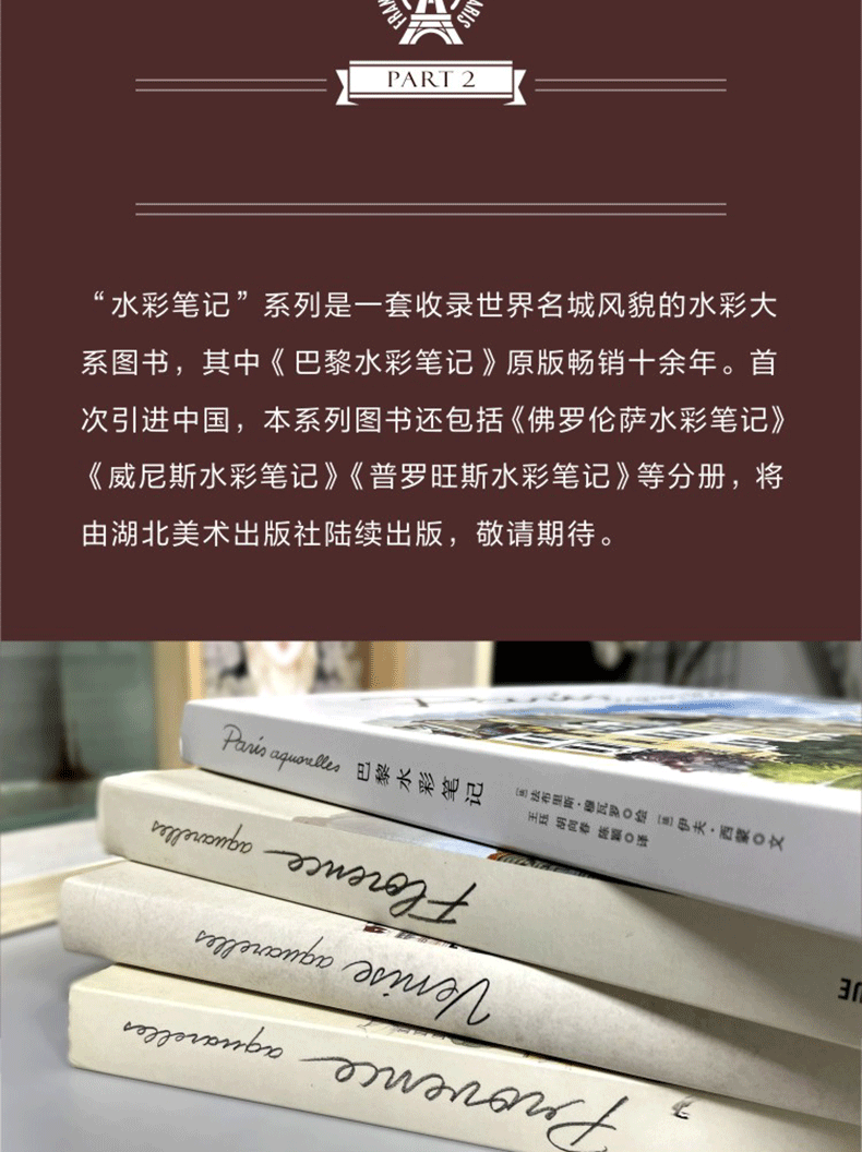 《巴黎水彩筆記》是向巴黎之美致敬,是為巴黎的榮耀譜寫的一曲頌歌,一首充滿愛與柔情的讚美詩…