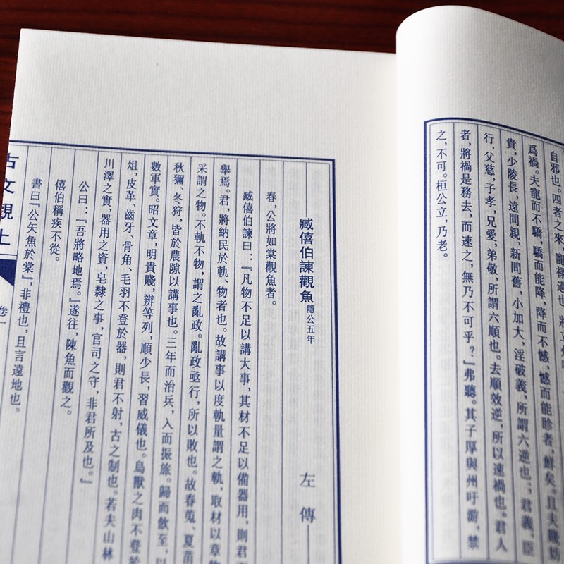 《古文觀止》是歷代散文總集。清代吳楚材、吳調侯編選,吳興祚審定。 《古文觀止(上下)》收錄了古代上起東週下至明末的散文222篇,雖比較一些選本所選篇目不算多,但它能重其所重,輕其所輕,故《古文觀止》問世至今300年來風行不衰,是清代以來流傳廣泛影響大的散文選本。 「觀止」二字出左傳,意思是:讀了這些盡美盡善的文章,別的文章就用不著去讀了。