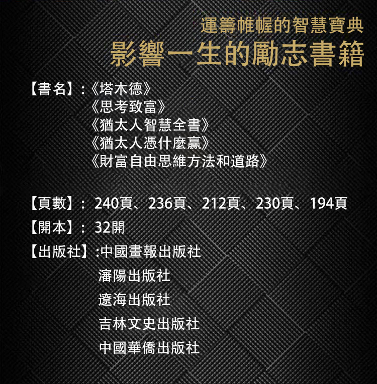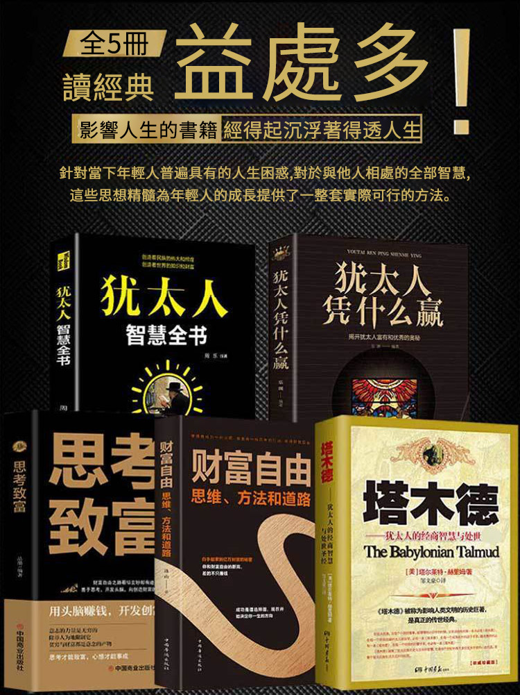 《塔木德》+《思考致富》+《猶太人智慧全書》+《猶太人憑什麼贏》+《財富自由》共5冊 僅需NT$1190