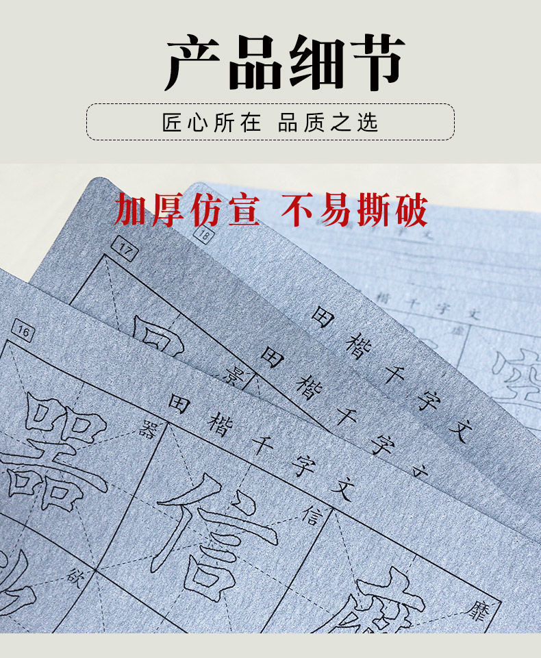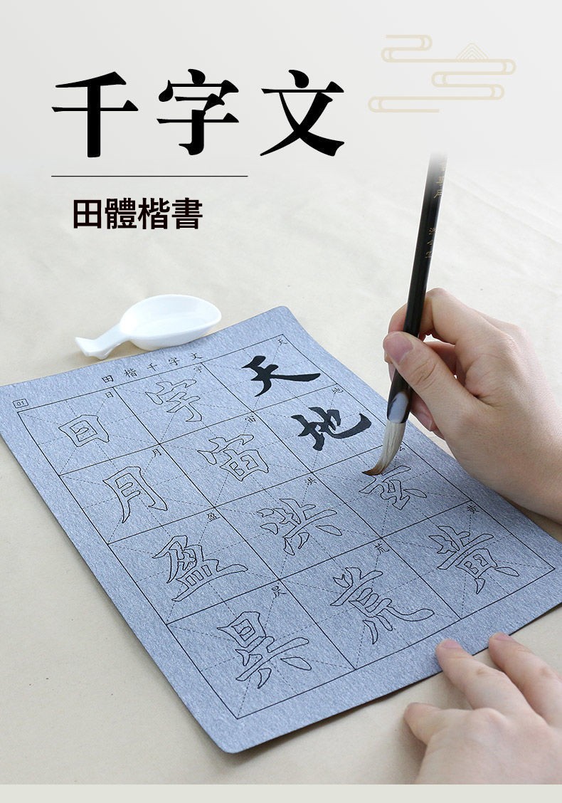 歐體田楷千字文毛筆字帖水寫布套裝84張 1000字 6厘米大字格(贈楷書專用毛筆+水碟)