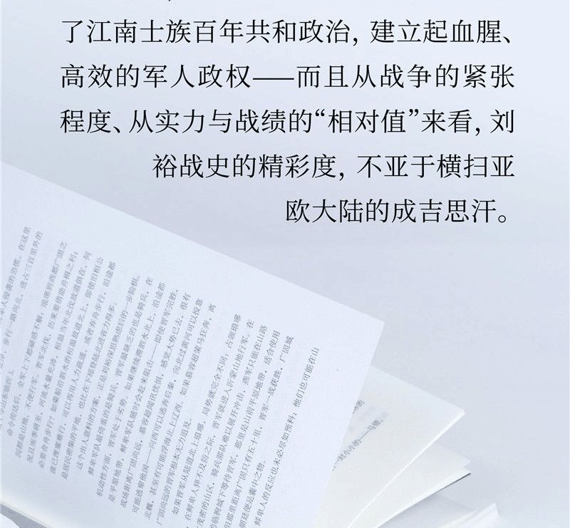 在歷代的王侯將相當中,劉裕的聲望和影響並不十分突出,但他的戰績謀略,在中國歷史中卻罕有人與其匹敵——他出身低微,憑實力在一次次血戰中崛起,兩個北方政權、兩個江南王朝、若干割據勢力,先後覆亡在他腳下;他終結了江南士族百年共和政治,建立起血腥、高效的軍人政權——而且從戰爭的緊張程度、從實力與戰績的“相對值”來看,劉裕戰史的精彩度,不亞於橫掃亞歐大陸的成吉思汗。本書作者以細膩的文筆,書寫了劉裕一生跌宕傳奇的戰爭生涯,同時在寫法上進行了若干有意識的探索。