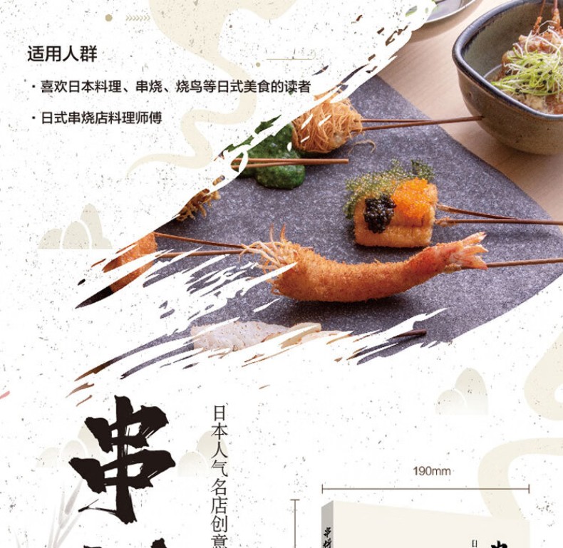 《串料理:日本人氣名店創意食譜》精緻串燒/燒鳥,邀您共享居酒屋美食! < 在美食料理界,烤串可能會遲到,但是絕對不會缺席。那麼在日料界,除了壽司(手鞠壽司、手捲壽司、手握壽司、軍艦壽司……),丼飯(咖哩豬排飯、鰻魚飯、牛肉飯……),小食(厚燒玉子、鹽烤秋刀魚……),湯(味噌、關東煮菜……),不得不提的就是潮燒潮。 < 一年四季都是烤肉的季節,約三兩好友,在居酒屋喝喝啤酒、擼擼串,是每個人都嚮往的生活。