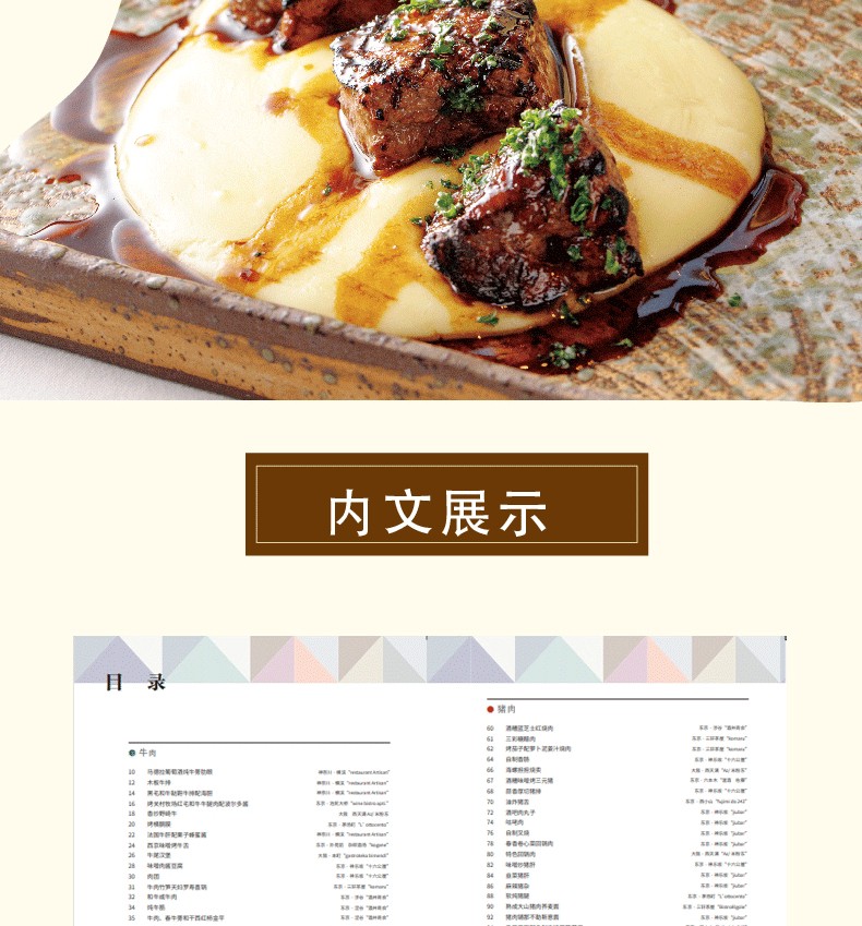 《日本人氣餐廳佐酒肉料理》介紹了100種富有創意的專業肉類的烹飪方法,按照牛肉、豬肉、羊肉、禽肉和其他肉類進行編排和分類,附有詳細的製作過程圖和專業的講解及演示。