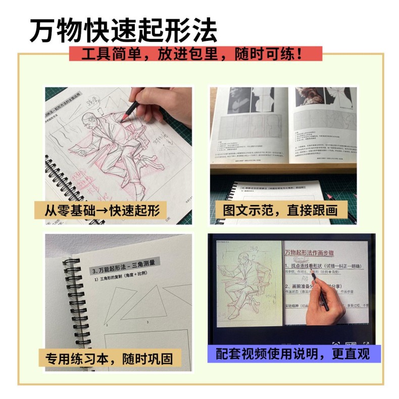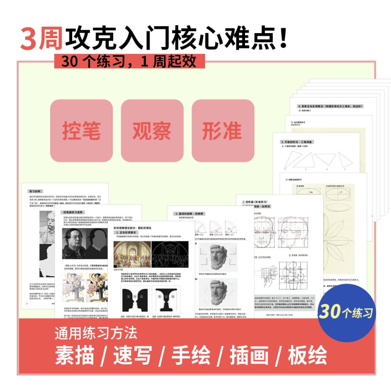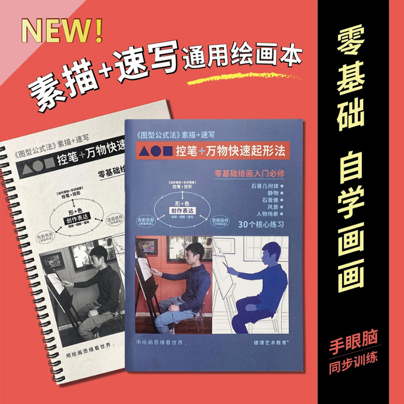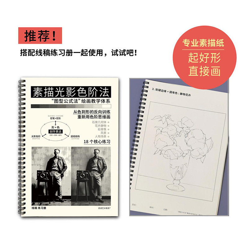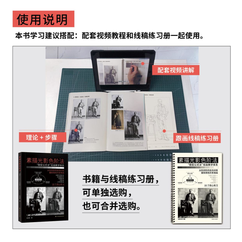 控筆萬物起形法+練習冊+素描光影色階法+練習冊(共4冊)直接畫臨摹本,光影素描本,繪畫教程書籍