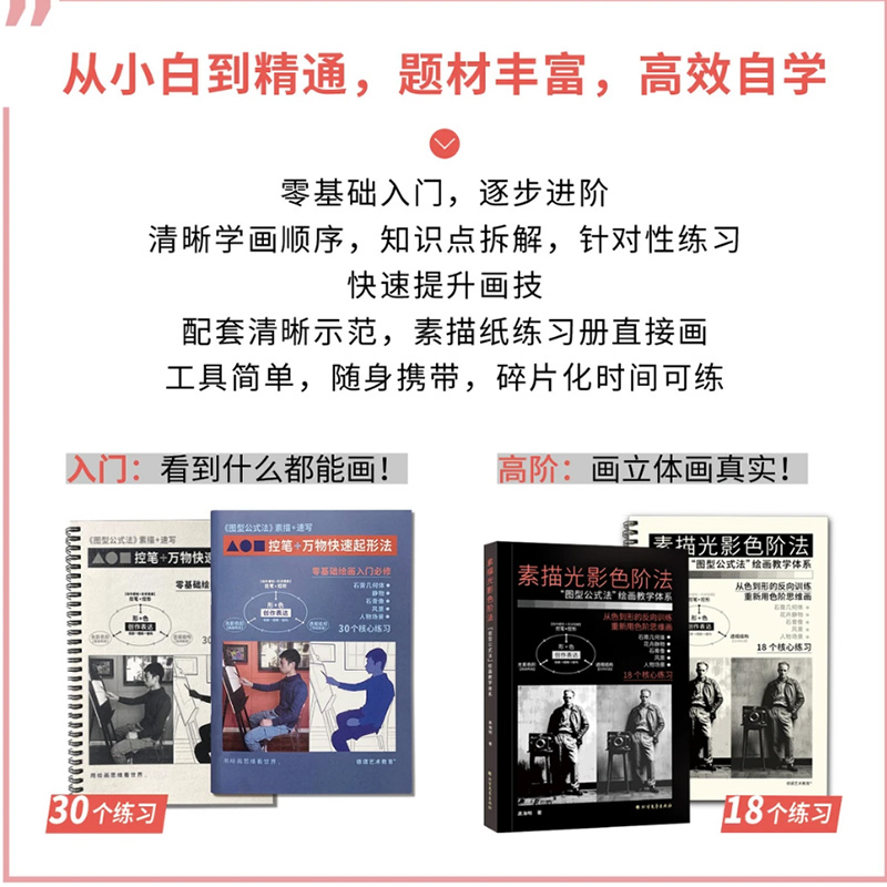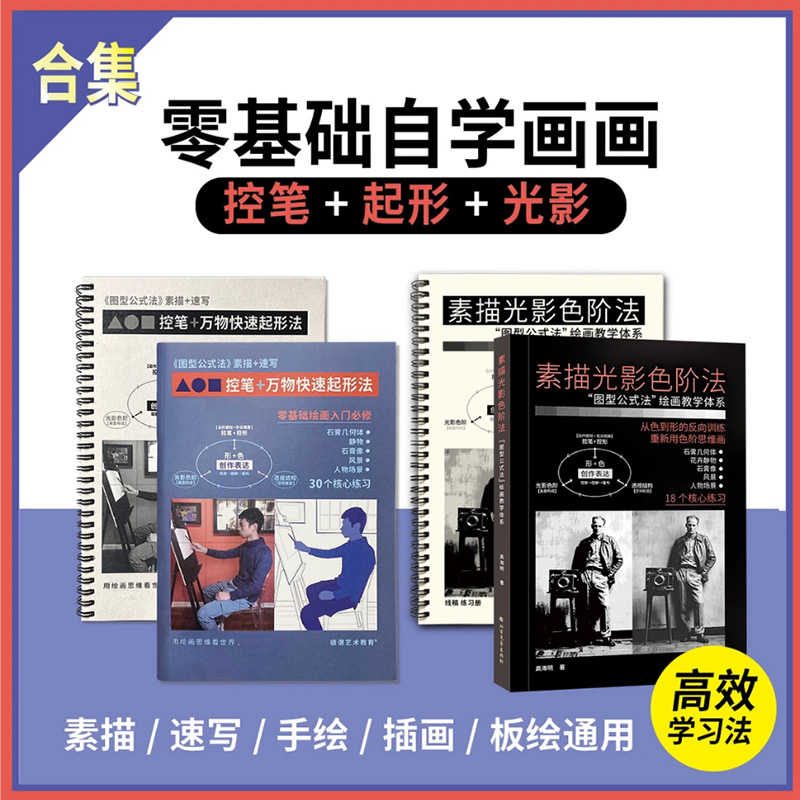 控筆萬物起形法+練習冊+素描光影色階法+練習冊(共4冊)