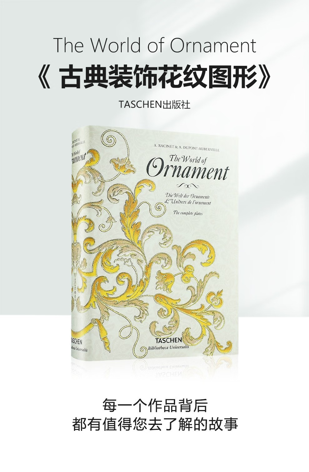 透過這本歷史上最優雅的圖案和裝飾設計的概要,探索裝飾思想的世界。 Racinet的《裝飾》彩色卷I 和II 和奧古斯特·杜邦-奧伯維爾的《組織裝飾》提供了一本內容豐富的資料書,內容涵蓋珠寶、瓷磚、彩色玻璃、彩繪手稿、紡織品和陶瓷裝飾品。