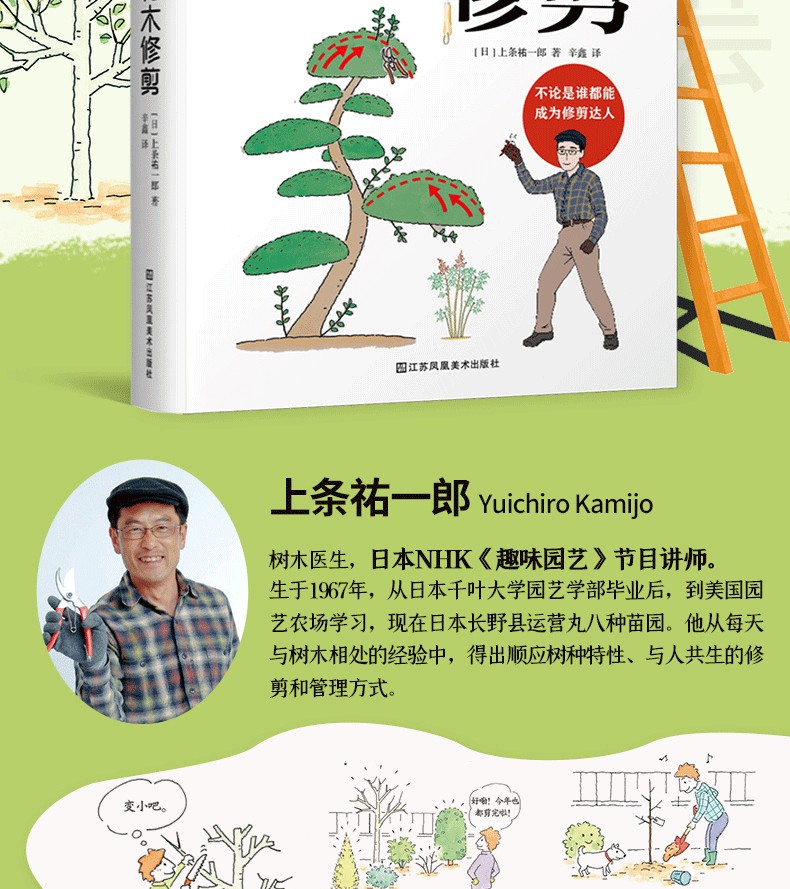上條祐一郎,樹木醫生。生於1967年,從日本千葉大學園藝學部畢業後,至美國園藝農場學習,現於長野縣運營丸八種苗園。他從每天與樹木相處的經驗中,得出順應樹種特性、與人共生的修剪和管理方式。