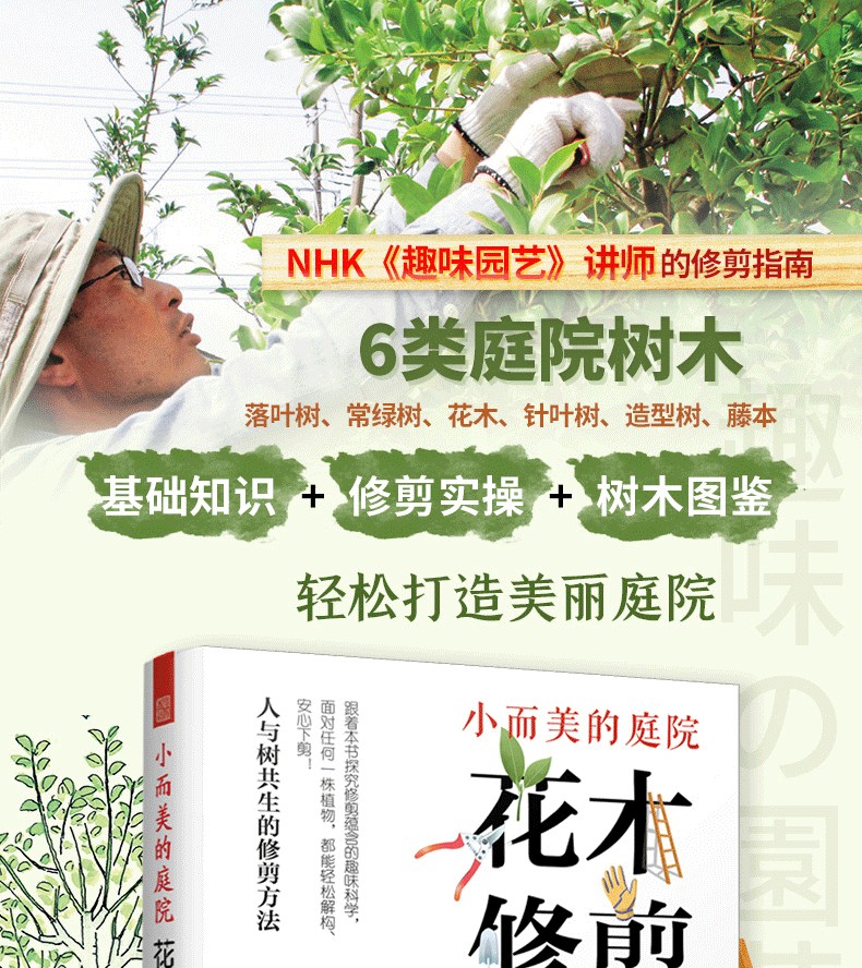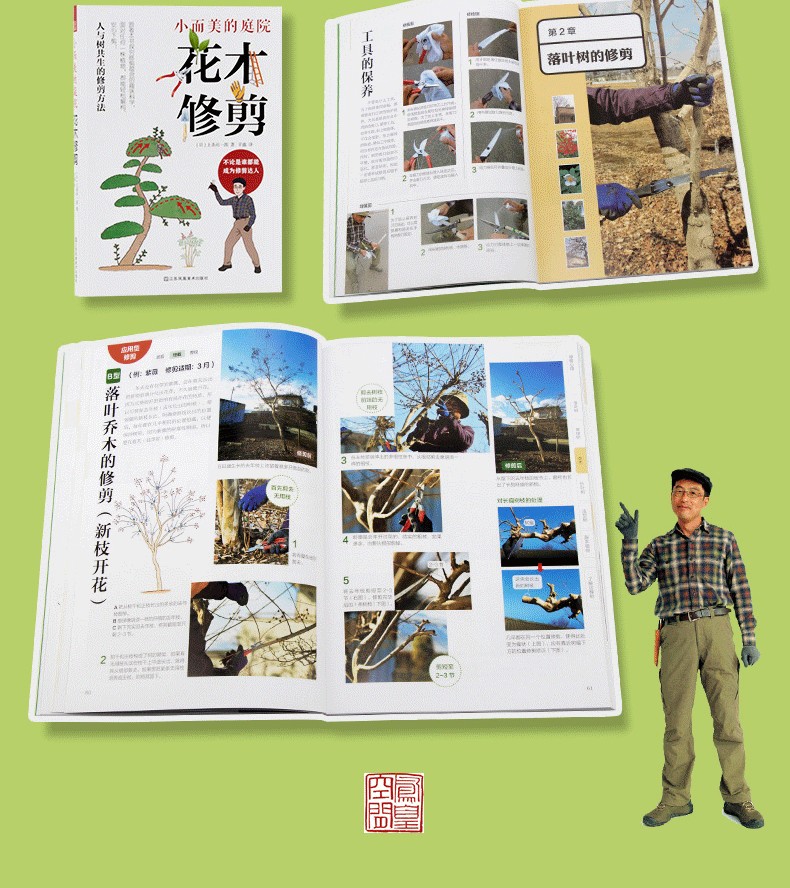 本書以面向普通園藝愛好者的花木修剪技巧為主要內容,以實景圖片和趣味插畫展示花木修剪手法。 Q書共分為6章,分別介紹了落葉樹的常用修剪技法、常綠樹常用修剪技法、花木常用修剪技法、針葉樹常用修剪技法、造型樹修剪技巧及藤本植物的修剪方法。