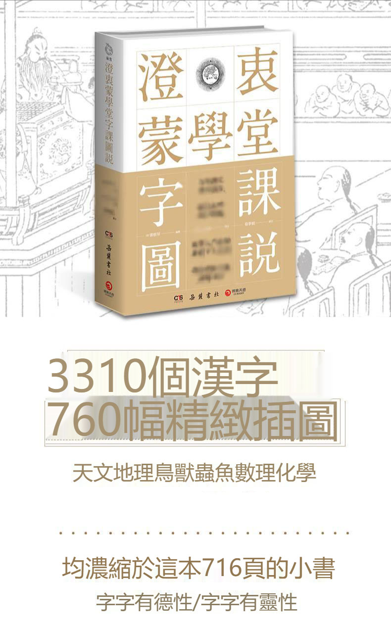 國學入門繞不開的繁體字工具書! 3310個常用字,七百六十餘幅清代畫匠繪圖,由淺入深、妙趣橫生,從圖像開始探索漢字的奧秘,旁徵博引、圖文並茂,涵蓋天文地理、鳥獸蟲魚、詩書禮儀、數理化學,帶你輕鬆有趣識繁用簡。