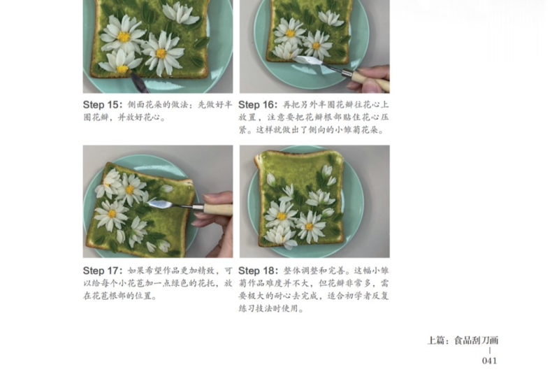 你是否見過麵包上開出鮮豔的花朵?你是否想過其貌不揚的土豆也能吃出花來?今天,就和小編一起,用最簡單的食材,吃最有儀式感的早餐。食物和刮刀似乎可以“碰撞”出無窮的可能,最簡單的食材,在她的手下也能變成一份賞心悅目的藝術品。不僅僅是食物,刮刀技法在繪畫、雕塑、蛋糕裱花等行業都迅速興起,成為藝術行業新寵。刮刀雕塑畫使用油畫刮刀和雕塑膏,採用獨特的技法,創作出生動的浮雕作品。題材以花卉為主,也可做山水鳥獸,質感粗糙復古,色調高級,具有超強的藝術感染力。