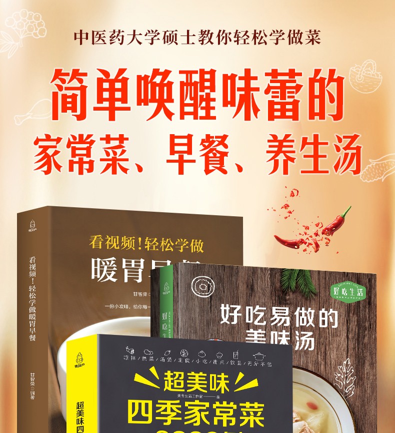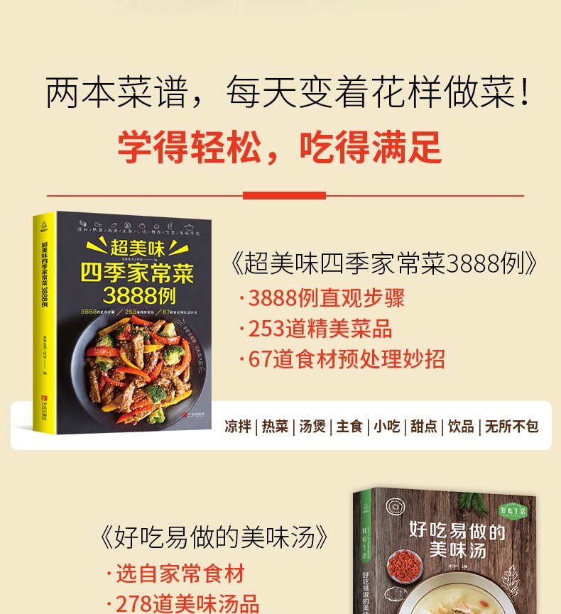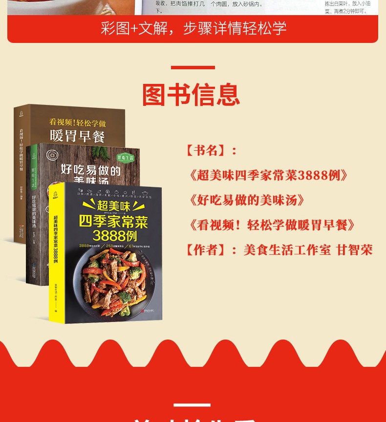 【全彩圖解 附贈5000道美食視頻教程】超美味四季家常菜3888例+暖胃早餐+好吃易做的美味湯 3冊